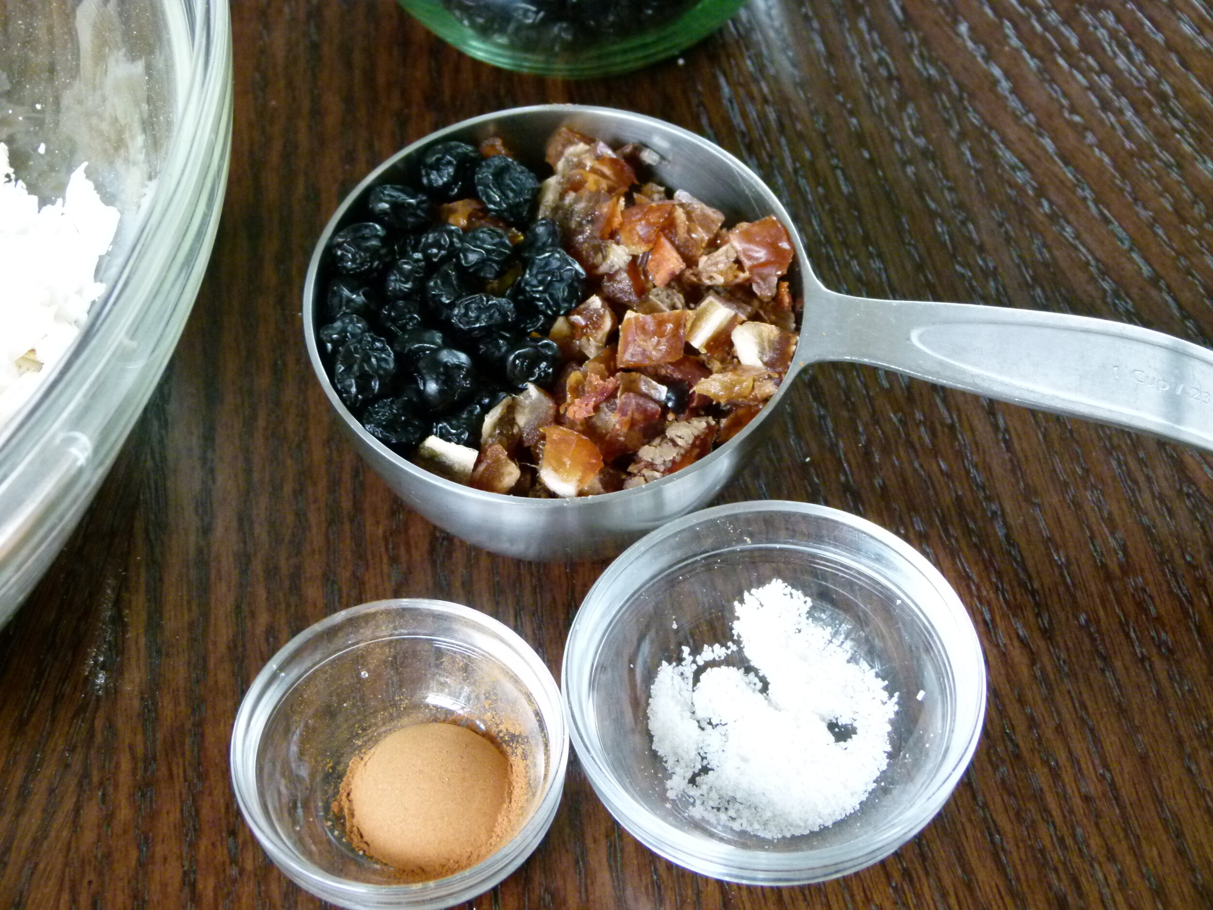 - 1 cup unsulphured dried fruit, chopped (I used dried dates and blueberries)