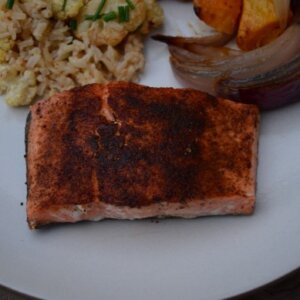Although the best descriptor for this recipe is “Spice-Rubbed Wild Salmon,” I could just as easily call it what it better represents to me, which is “7-minute Salmon.” Or “Plan B Salmon.” Or my favorite “I-Cannot-Believe-This-Game-Is-Going-Into-Extra-Innings Salmon.” Of course, you can replace most of that phrase with “Orthodontist Is So Late Today” (Salmon) or “How Long Have You Known You Needed The Posterboard?” (Salmon.) My point is that sometimes no matter how organized I am about meal planning and how good my intentions are, life can get in the way.