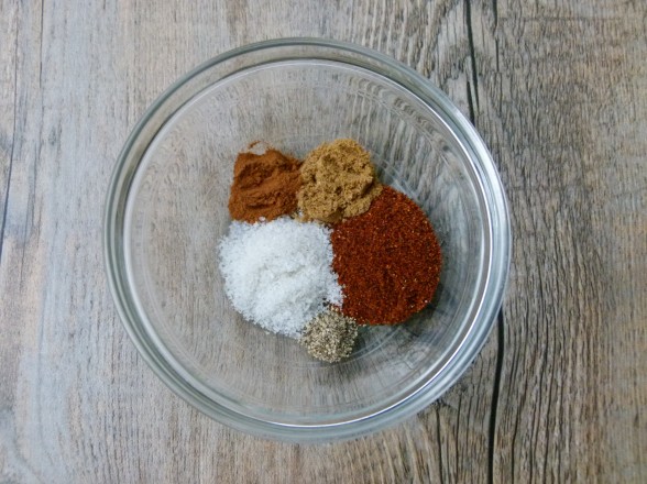- In a very small bowl, stir together the chili powder, cumin, cinnamon, salt and pepper. Place the side of salmon on a cutting board, skin side down. Pat fish dry with a paper towel. Rub the spice mixture evenly over the top of the fish. Cut into 4 or 5 (or 6) individual servings (if using 24-ounce side). If you have time, allow the fish to sit coated with the spices for 15 minutes at room temperature.