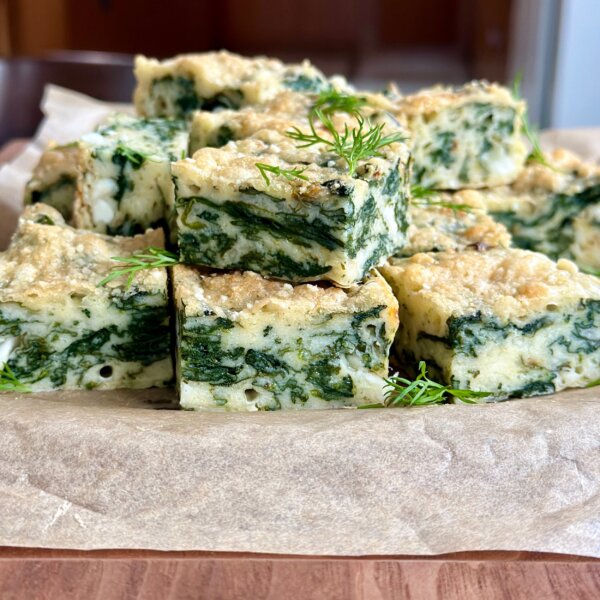 Step 1: Preheat the oven to 375°F. Line an 8 x 8 baking dish completely with parchment paper, pressing it into the corners so the eggs don’t leak underneath. Brush the parchment with melted butter.
