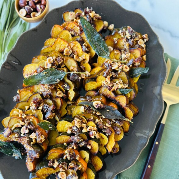 Unlike other versions that rely only on sweetness, this recipe balances flavors perfectly – savory roasted acorn squash with just enough maple syrup to enhance its natural sugars. The brown butter, toasted hazelnuts, and crisp sage leaves take it over the top, creating layers of flavor and texture that pair beautifully with everything from roasted chicken to a hearty grain salad.