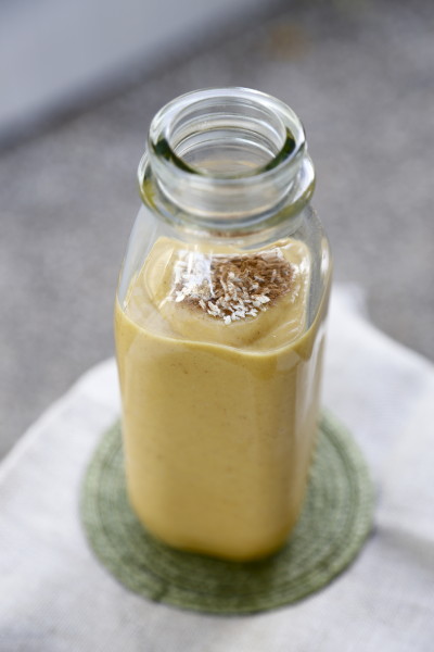 - Combine all ingredients in a blender and blend until smooth.