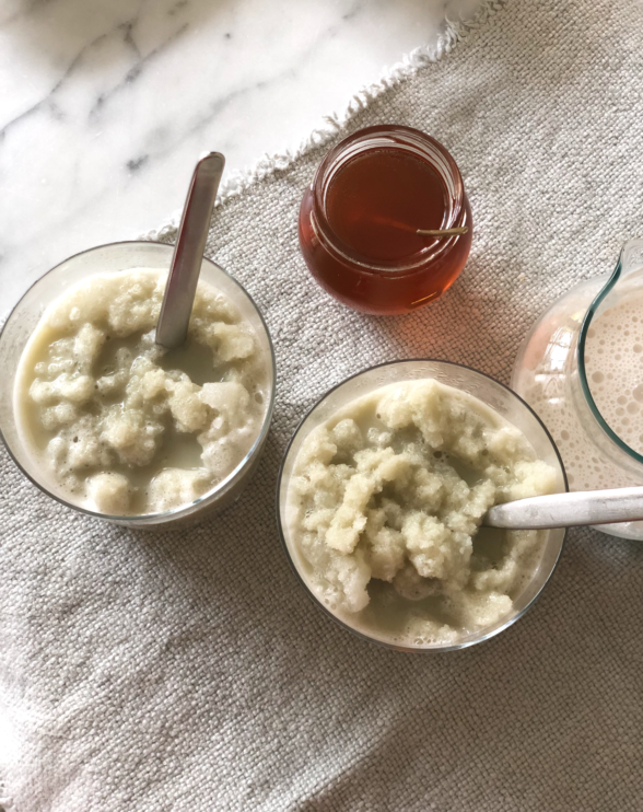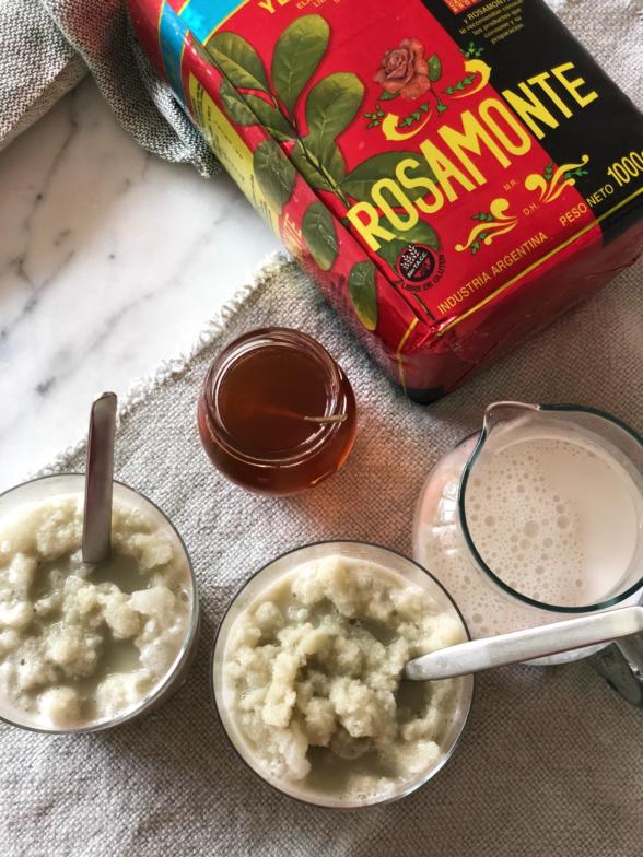 I came up with the perfect drink/treat to get me over the back-to-school hump. I’m calling it a Yerba Mate Slushie. A slushie is just what it sounds like: icy, a little sweet, refreshing, and if you suck it down too fast, you are guaranteed to get a brain freeze. I love using Argentine yerba mate for my morning caffeine because coffee makes me way too jittery, but the caffeine in yerba mate is balanced, both stimulating but calming. Plus, yerba mate contains more antioxidants than green tea and is packed with B vitamins, vitamin C, zinc, potassium and manganese.