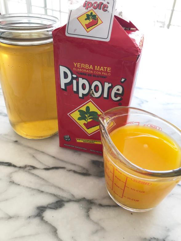 - Steep the yerba mate in a large pitcher or container with hot water for 5 minutes. Strain and refrigerate until cold.
