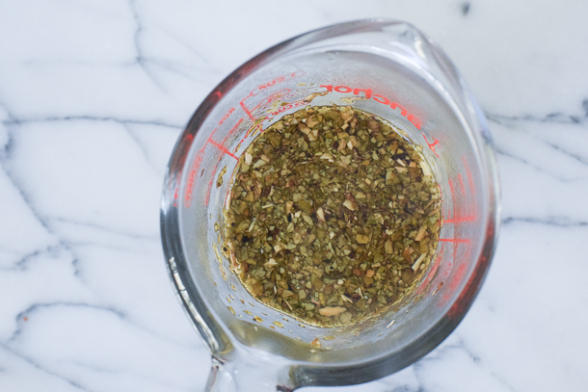 - 1 Tablespoon Yerba Mate leaves, plus ½ cup hot water