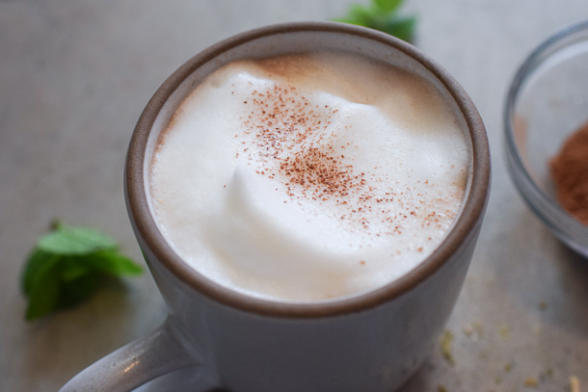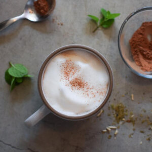 I thought a mint chocolate yerba mate latte would be a perfect morning treat this time of year. It also feels a little indulgent, but it is perfectly healthful. I try very hard to start every day right, but especially during the holidays so I am not tempted to throw in the towel every time I see a Christmas cookie!