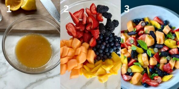 -toss it in simple fruit salads for an added bright, sweet, and tart flavor that enhances the flavor of the fruit. To make a simple fruit salad tossed in citrus syrup, follow these instructions and ingredients Fruit Salad with Citrus Syrup and Fresh Mint Serves: 4 ½ small cantaloupe, cubed