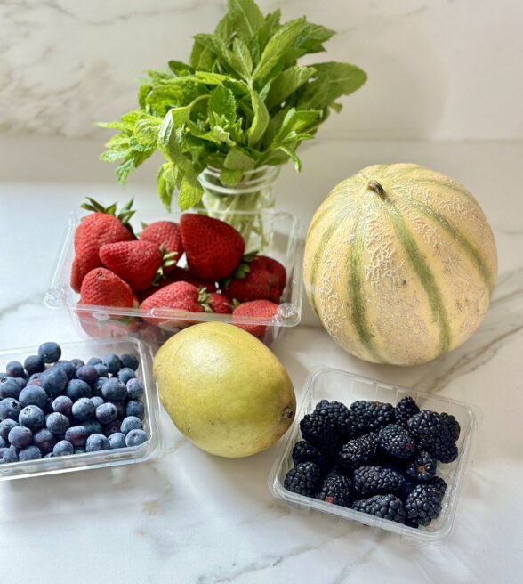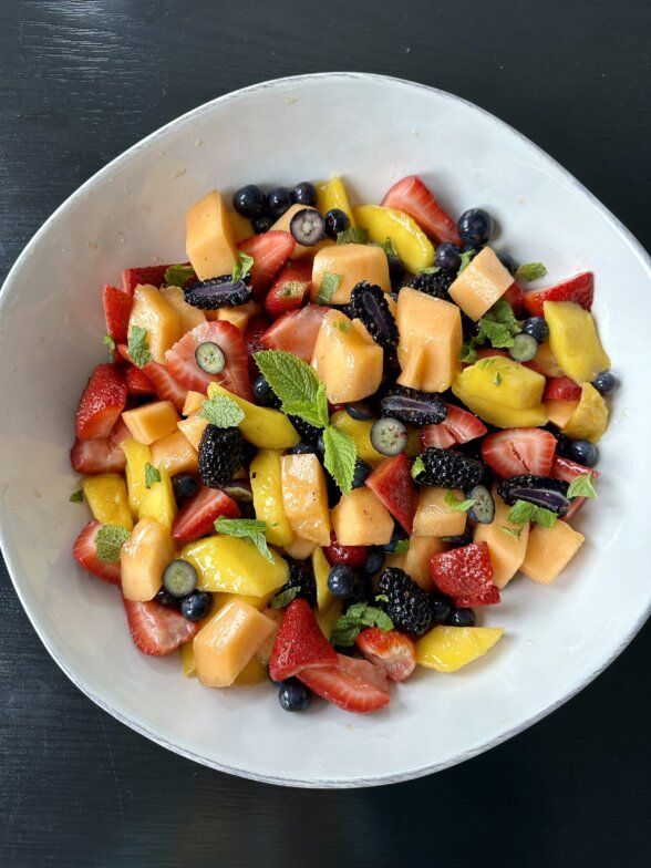 Fruit Salad with Citrus Syrup and Fresh Mint