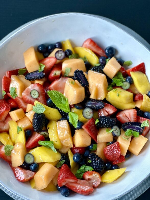 - toss it in simple fruit salads for an added bright, sweet, and tart flavor that enhances the flavor of the fruit.