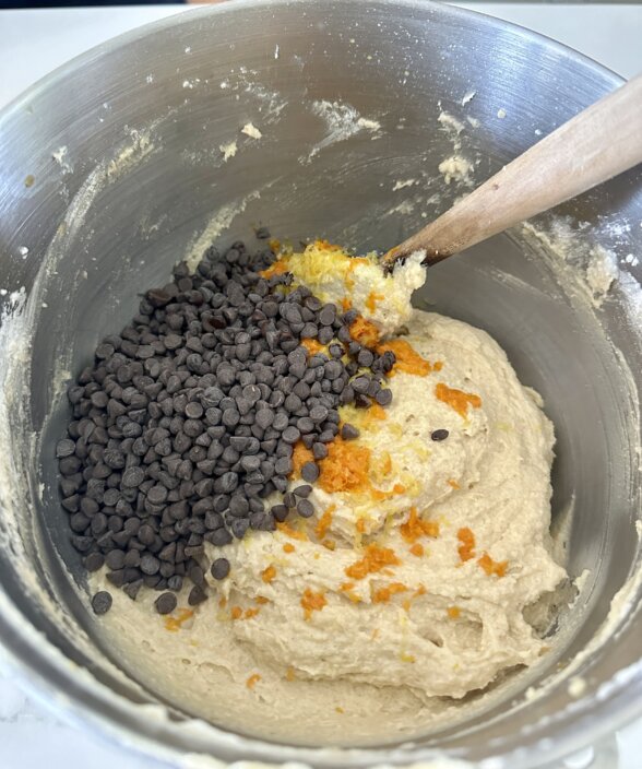- Add-ins – mini chocolate chips or finely chopped chocolate (I like bittersweet), diced candied oranges and lemons or citrus zest