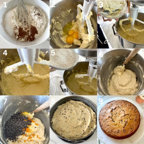 - In the bowl of an electric mixer fitted with the paddle attachment or beaters, cream the butter and sugar on medium speed for 4 minutes, until light and fluffy, scraping down the sides as necessary. Add the eggs one at a time, stopping to scrape down the sides of the bowl between each addition. Beat in the vanilla (don’t worry if the batter looks curdled). Add the ricotta cheese and mix on medium-low speed until incorporated. Scrape down the sides of the bowl and add the dry ingredients in one addition. Mix on low speed until just combined. Stir in the chocolate chips candied citrus making sure to scrape the very bottom of the bowl.