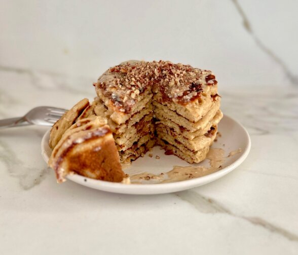 If you give these Cinnamon Roll Pancakes a try, snap a pic and tag @pamelasalzman so I can see your beautiful creations. I also really appreciate readers taking the time to leave a rating and review! Subscribe for free to my site for the latest recipes, updates and things I’m loving lately. If you enjoy this recipe, I taught it last year in my online class. Check out my online class here! Give me an hour a month, and I’ll make you a better, healthier cook!