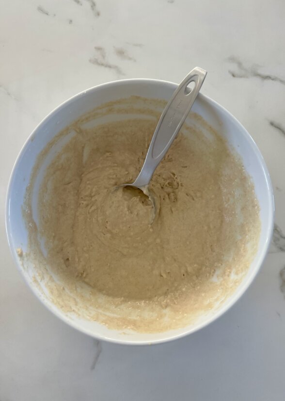 - To make the cinnamon swirl, whisk together the almond butter, sweetener, and cinnamon until it makes a smooth paste. Transfer mixture to a Ziploc bag and snip a tiny bit off the corner of the bag.