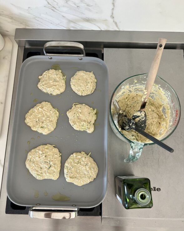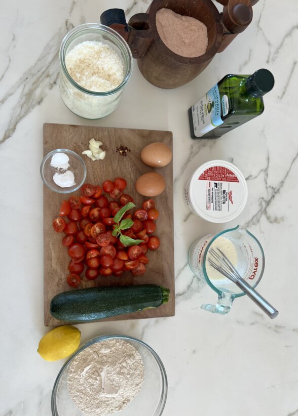 - Zucchini, cheese, and lemon zest – try a new variation! Such as sauteed onions and bell peppers, asparagus and scallions, blanched broccoli, grated apple with crumbled bacon…anything you like goes!