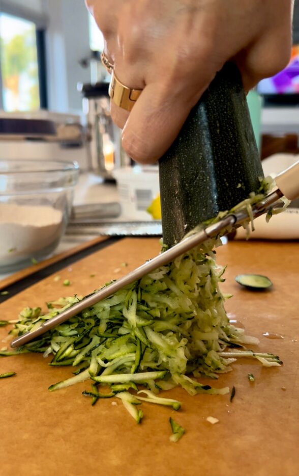 - Zucchini – Grate the zucchini, but do not peel and no need to squeeze. The zucchini flavor is very subtle. It is such an easy way to get veggies into your day!