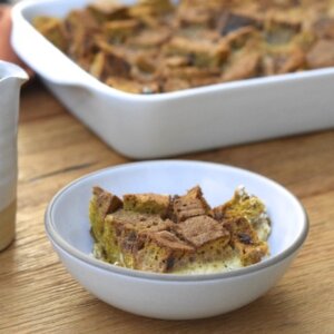 Pumpkin Bread Pudding with Apple Caramel Sauce