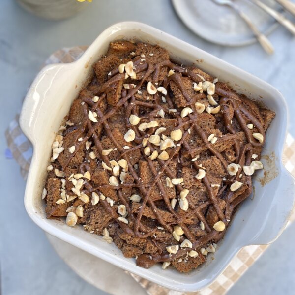 It’s a lightened-up version using almond milk, almond butter, and less sugar. Perfect for a feel-good brunch.