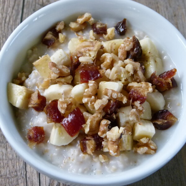 Sprouted grain bread like Ezekiel works beautifully here. It holds up well to soaking and adds nutritional value.