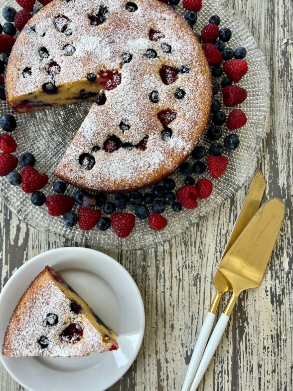 This moist and tender Ricotta Cake recipe features fresh blueberries and raspberries, complemented by vibrant citrus zest. This simple cake offers incredible depth and flavor, making it perfect for any summer gathering or occasion. Dress it up or keep it simple – the choice is yours!