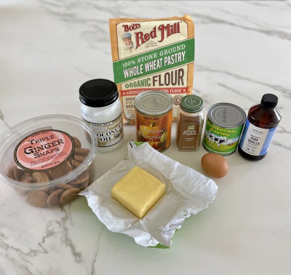 - Gingersnap cookies – I like using the gingersnap cookies from Trader Joe’s, but you can use different cookies for the crust. Refer to the substitution list below for other ideas.