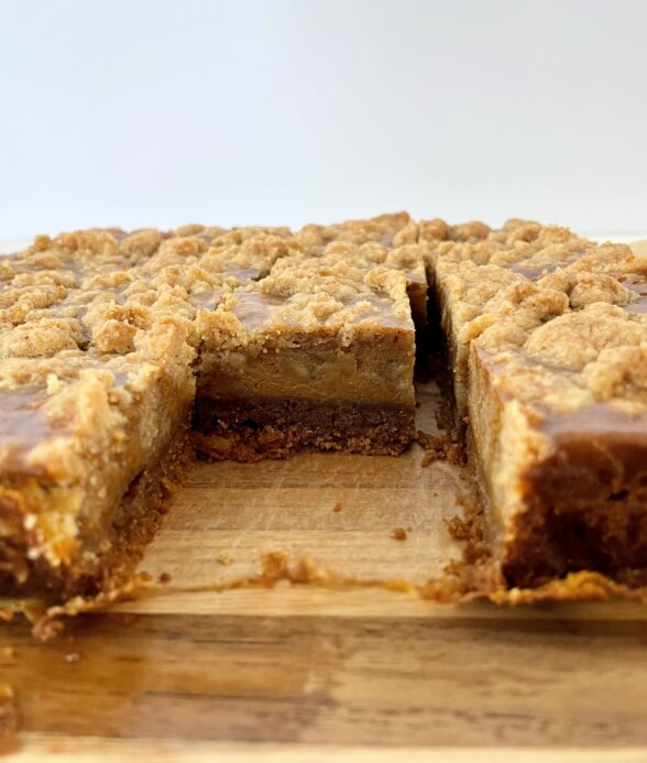 Just when I think I can’t come up with another awesome pumpkin dessert recipe, I do! This is a pumpkin pie meets a crumble meets a gingersnap cookie! What’s not to love? And it’s so easy, has make-ahead written all over it and can be adaptable. There are many twists on this recipe including a graham cracker crust or a chocolate cookie crust and you can omit the crumble topping if you want to keep this simple.