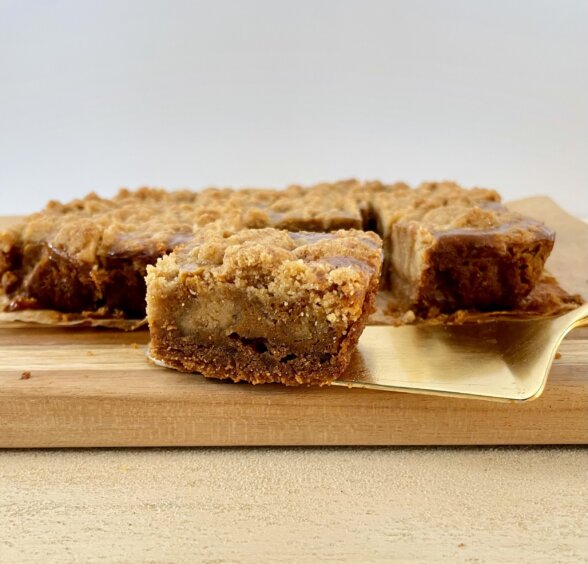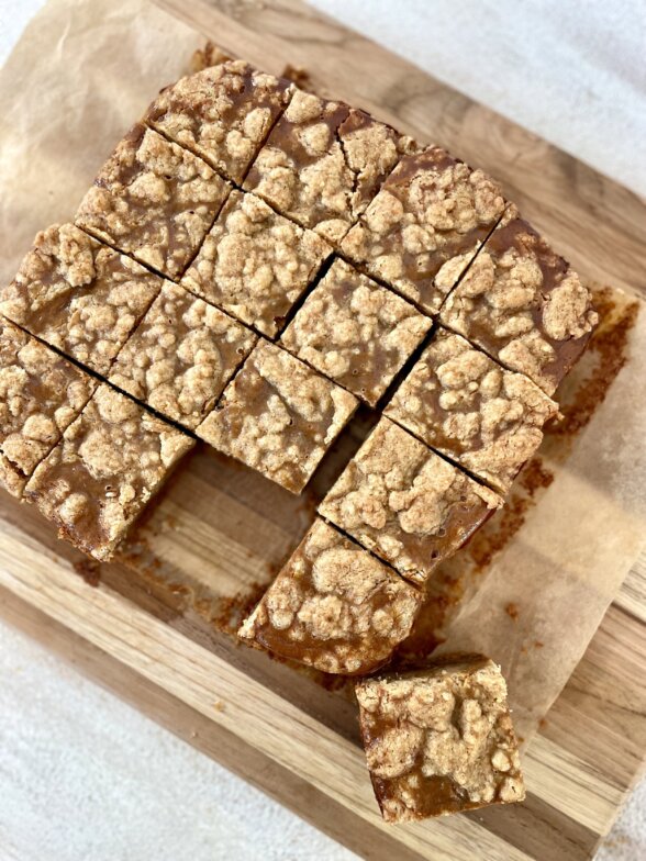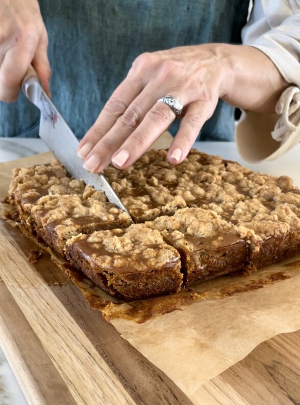 I just made this for a work potluck. It is delicious! Several asked for the recipe. I love that it is easily adapted for a crowd but also can be made in the 8×8 size. My fav for fall flavors.