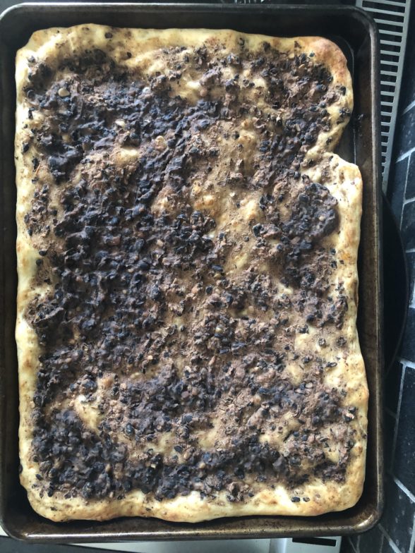 looks delicious. I’ve been making my own pizza dough and looking for creative toppings. I’m not good with estimates… about what size is 1/2 baking sheet. Thanks