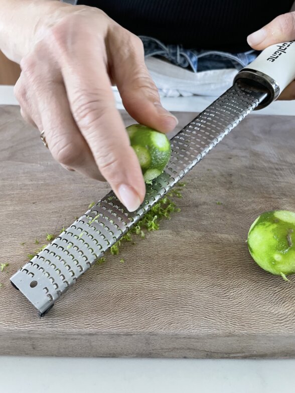 - Lime zest: is a key ingredient. Since we are using the skin of the lime for this recipe, I prefer to use organic limes. Always zest before you juice citrus or else it will be very hard to zest after you juice.