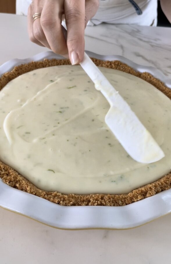 - In a large bowl (I like to use something with a spout) whisk together the condensed milk, yogurt, lime zest, and lime juice until smooth. The mixture will become white and creamy. Pour the mixture into the graham cracker crust. Bake for 15 minutes, until the filling is almost set; it should wobble a bit like jell-o. Let cool at room temperature for 30 minutes, then place in the refrigerator to chill thoroughly, about 3 hours.