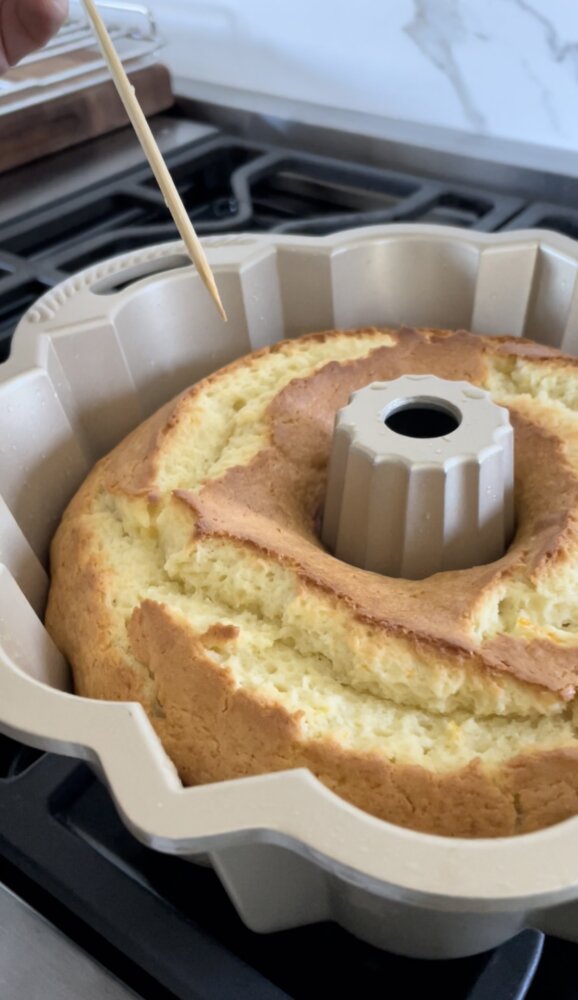 - Allow cake to cool in the pan for 10 minutes, then run a thin knife around all the edges, including the inner tube. Carefully invert the cake onto a wire rack to cool completely.