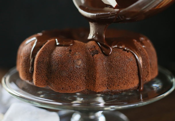 I think you could also make this in mini bundt pans and how cute would that be? I have made this cake the day before serving and it sits perfectly well NOT covered in ganache, but wrapped well in plastic wrap. The next day, unwrap and drizzle away.